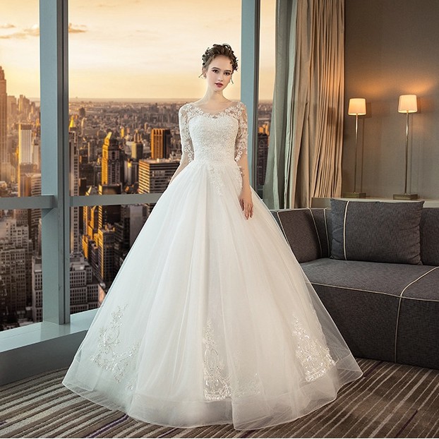 Elegant Women Round Collar Lace Embroidery Slim Fit Mermaid Long Tail Wedding Gown Party Dress Shopee Malaysia