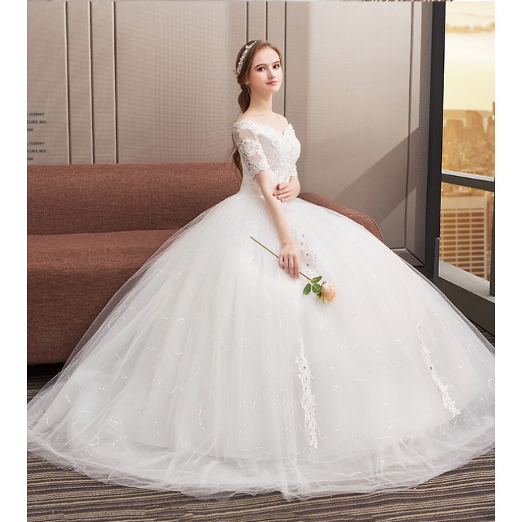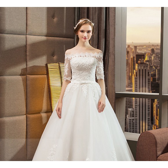 White Wedding Dress One Word Shoulder Wedding Dress Korean Drag Tail Wedding Dress Two Piece Wedding On Luulla
