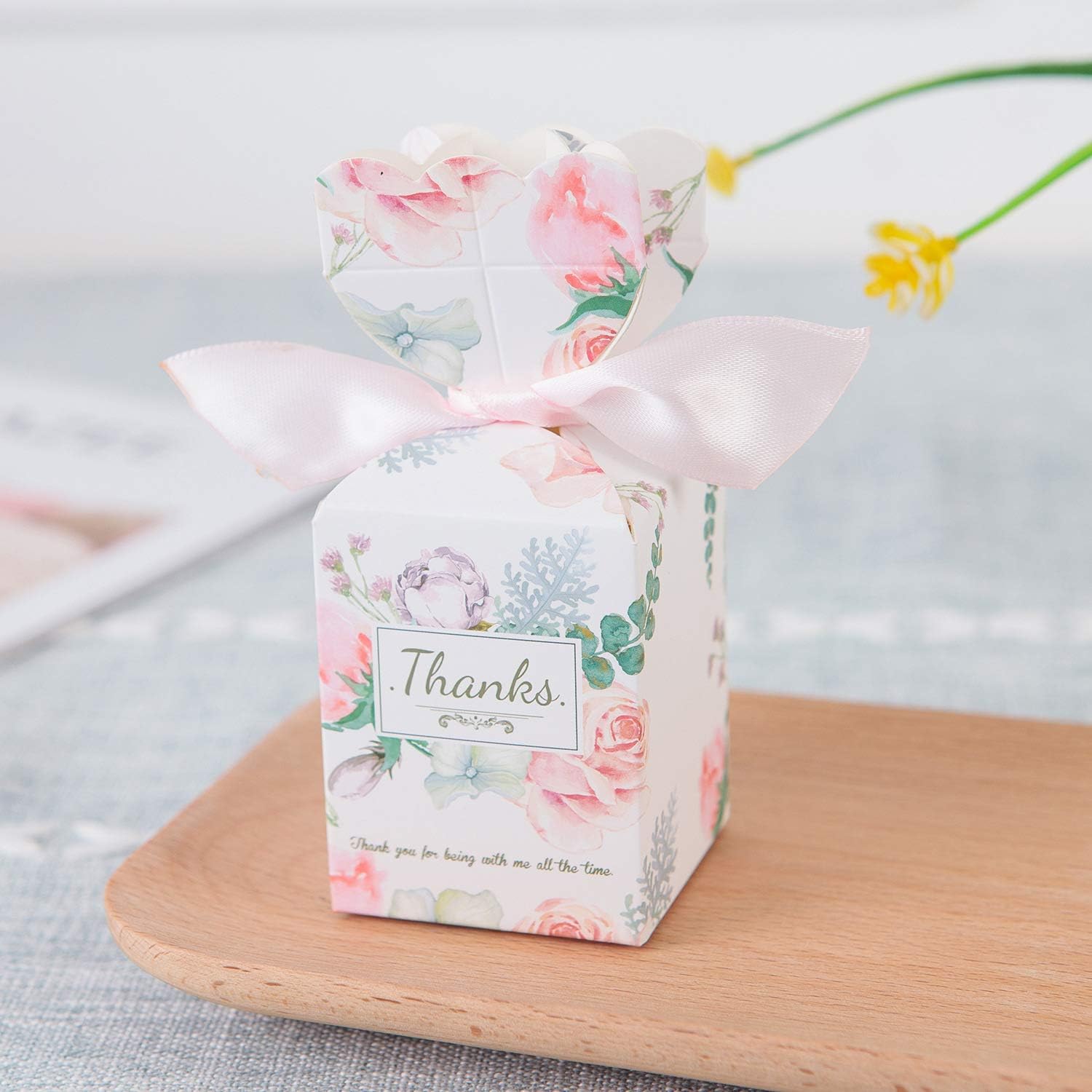 Amazon Com Zorpia Pack Of 20 Pcs Diy Wedding Favors Candy Boxes With Ribbon And Flower For Engagement Bridal Shower Party Princess Pink Flower Island Home Kitchen