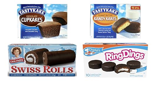 Philly Favorites For Chocolate Lovers One Box Each Of Tastykake Peanut Butter Kandy Kakes Chocolate Cupcakes Little Debbie Swiss Rolls And Drake S Ring Dings Amazon Com Grocery Gourmet Food
