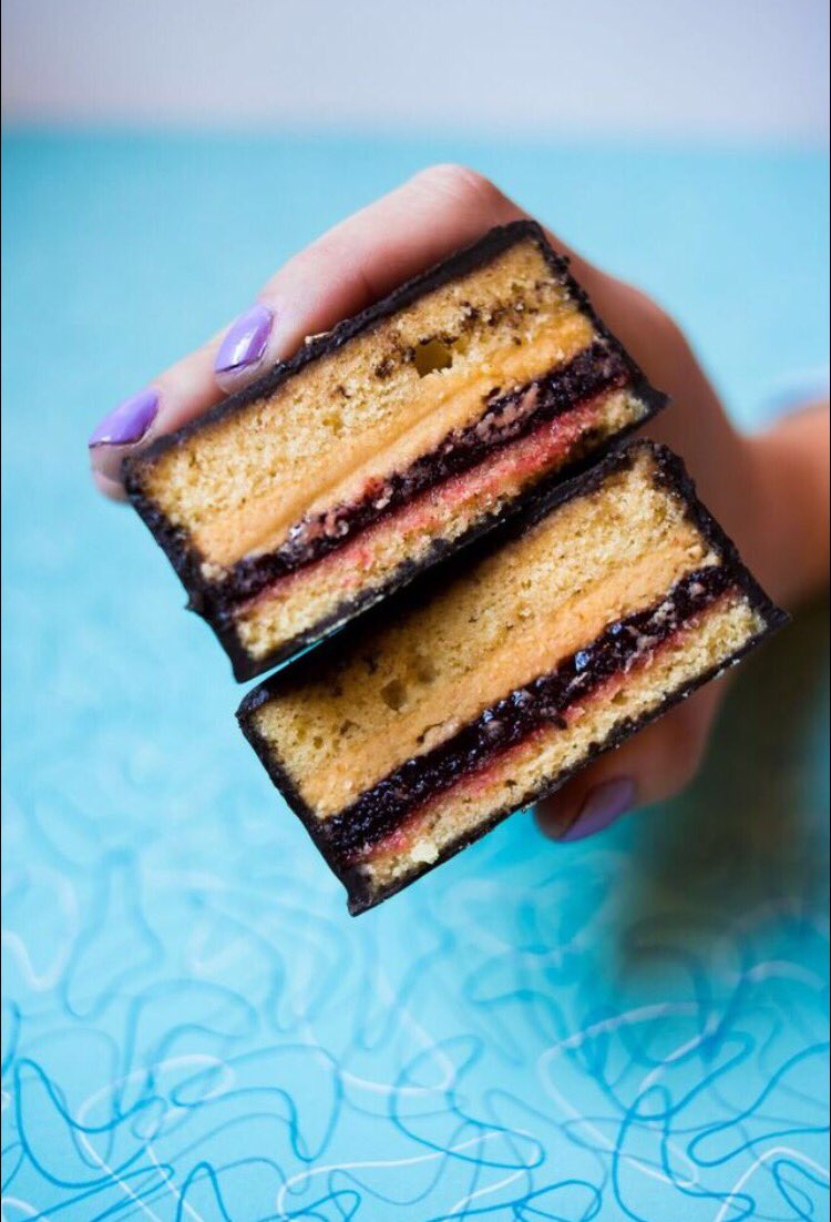 Hand piped with personalised messages from the chefs. Peanut butter cream filling and raspberry jam schmear form the nutty nucleus of this snack cake that makes for a tastier and tinier alternative for your lunch box. Peanut butter buttercream sandwiched between two layers of moist chocolate cake and encased in a velvety chocolate glaze.
