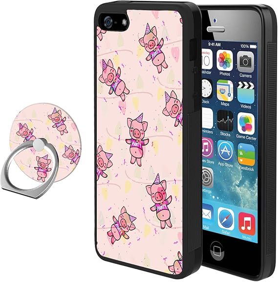 Amazon Com Lovely Cartoon Party Pig Iphone Se 5s 5 Case With Ring Holder Stand Tpu Rubber Case Only For Iphone Se 5s 5