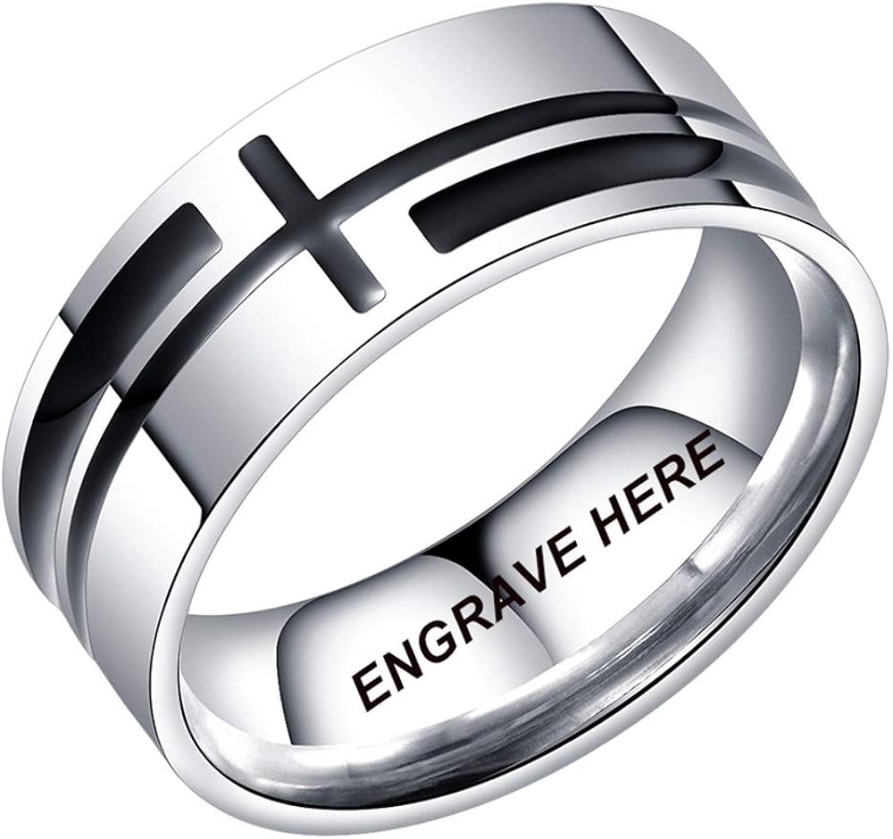 Handmadejewelry Engraved Names Rings For Men Stainless Steel Rings Personalized Gift For Boyfriend Cross Love Rings Amazon Com