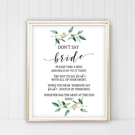 Ring Game Bridal Shower Sign Games Ideas Dont Say Bride Etsy