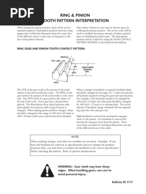 Ring and pinion gear pattern interpretation adjustment. The differential ring gear backlash is correct. The images below illustrate both acceptable and unacceptable ring and pinion gear patterns.