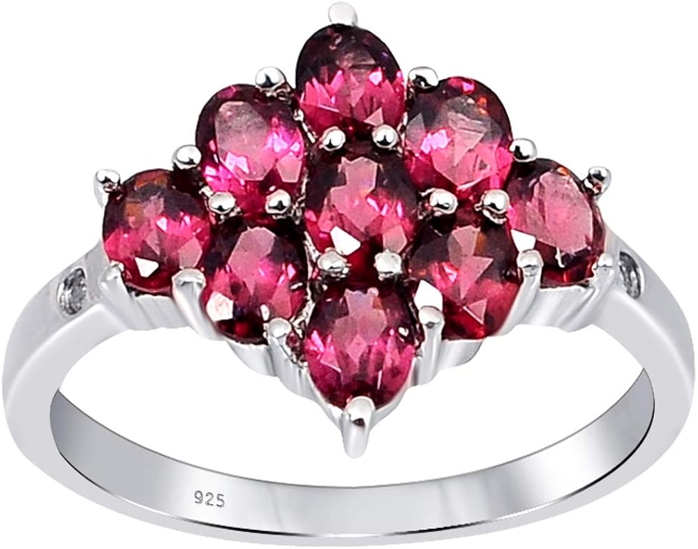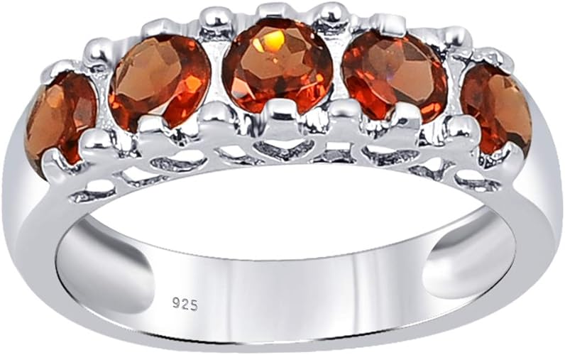 Orchid Jewelry 925 Sterling Silver 5 Stone Ring For Her Round Shape Red Garnet Ring