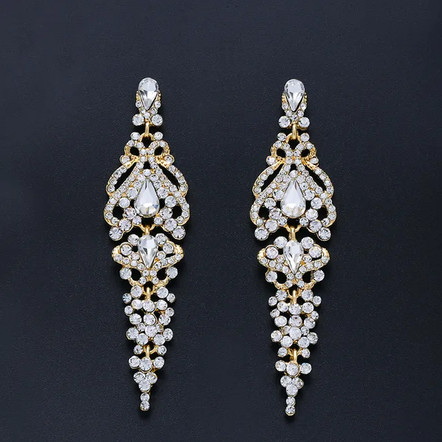 Shining Clear Ear Drop Wedding Earrings For Brides Women Gold Long Drop Brinco 2017 Bridesmaid Jewelry Party Accessories Teardrop Wedding Earrings Wedding Drop Earringswedding Earrings Aliexpress