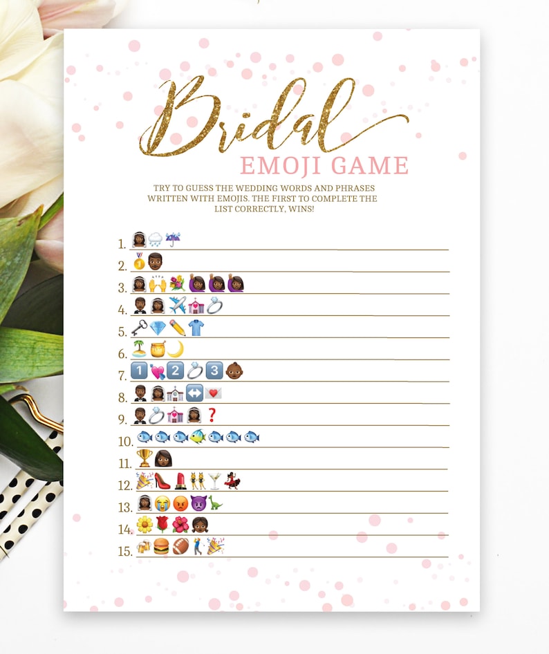 The person with the most correct answers wins. I created this game for my sisters bridal shower and im sure your guests will love it as. Not only is this bridal shower emoji game super simple its guaranteed to get guests giggling as they try to solve these silly clues.