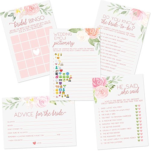 Amazon Com Bridal Shower Games Set Of 5 Activities For 50 Guests 5x7 Cards Floral Rustic Greenery Theme Includes Marriage Advice Cards Bridal Emoji Wedding Shower Decorations Favors Party Supplies Toys Games