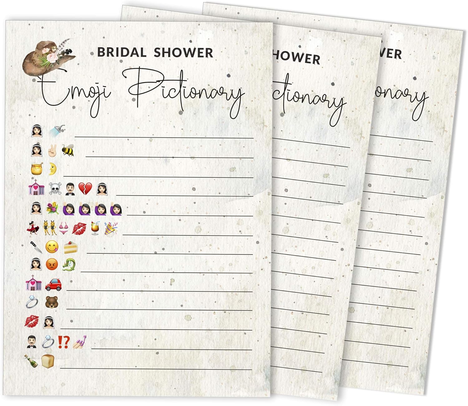 Amazon Com Emoji Bridal Shower Game Set Of 50 Cards Floral Emoji Pictionary Activity Fun Unique And Easy Kitchen Dining