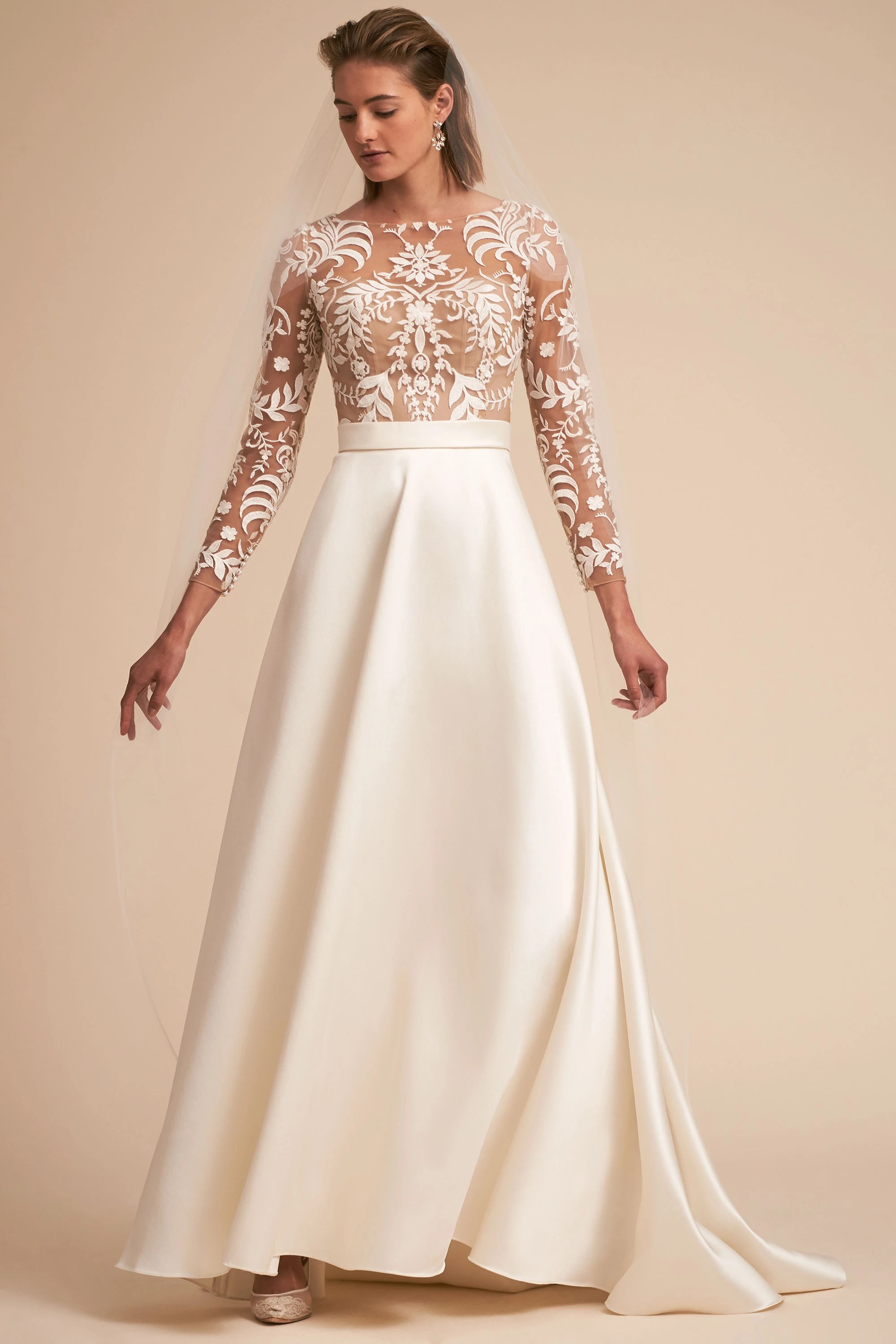 Although not widely popular the 1950s love of polka dots made it’s way into woman’s evening wear as well. See more ideas about wedding gowns, wedding gowns vintage, wedding dresses. 1950s bridal gown | boat neck, floral lace, short sleeve, pencil sheath, empire waist | joske’s houston, tx